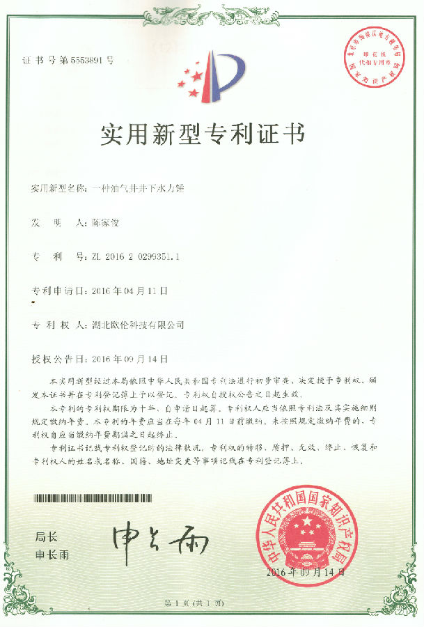 湖北歐倫科技有限公司是在北京歐倫石油技術(shù)開(kāi)發(fā)有限公司和青海歐倫油氣設(shè)備有限公司基礎(chǔ)上組建而成的企業(yè)。專(zhuān)門(mén)進(jìn)行各類(lèi)井下工具設(shè)計(jì),制造,生產(chǎn),銷(xiāo)售及其服務(wù)。新公司成立于2012年底,注冊(cè)資金1000萬(wàn)元。